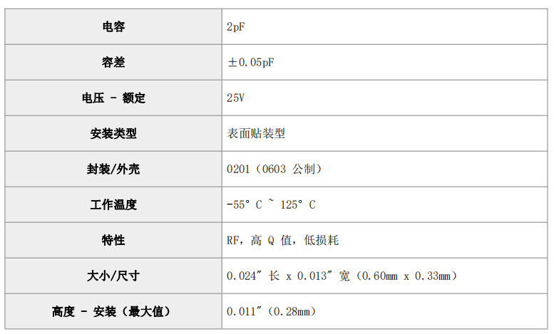 描述:CAP THIN FILM 2PF 25V 0201 品牌:AVX Corporation